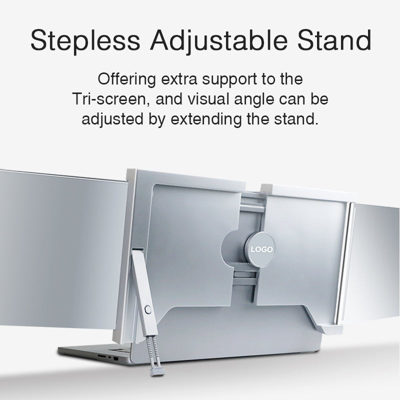 Portable Design with Exclusive Scalable bracket - The FOPO laptop triple screen has a scalable bracket with non-slip pads on the bottom to adjust the length for stability without falling down. Its ultra-portability, energy-saving, compact and foldable design is perfect for portable scenario. You can put it in your backpack and carry it anywhere, such as coffee shops, libraries or on the plane.