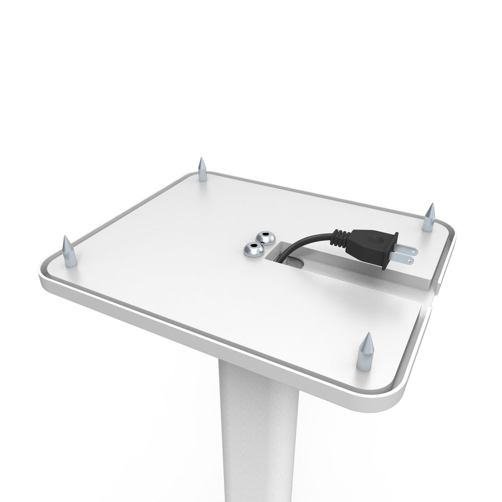 Experience immersive sound with the Kanto YU4 140W Powered Bookshelf Speakers in Matte White. Designed for shared enjoyment, these speakers produce 140W peak power, filling your room with rich, spacious sound. Featuring carefully crafted 4” Kevlar® drivers and 1” silk dome tweeters, they faithfully reproduce your favorite tunes with crystal-clear detail. With built-in Bluetooth® and a phono preamp, the YU4 offers versatile connectivity, allowing you to easily stream music or play vinyl. Bundled with the Kanto SP32PLW 32" Tall Bookshelf Speaker Floor Stands, these low-profile stands ensure optimal sound projection with their rotating top plates. Constructed from heavy-duty steel and featuring interchangeable spiked and domed feet, they provide stability and versatility for any flooring type. Elevate your listening experience with this perfect combination of style and performance.