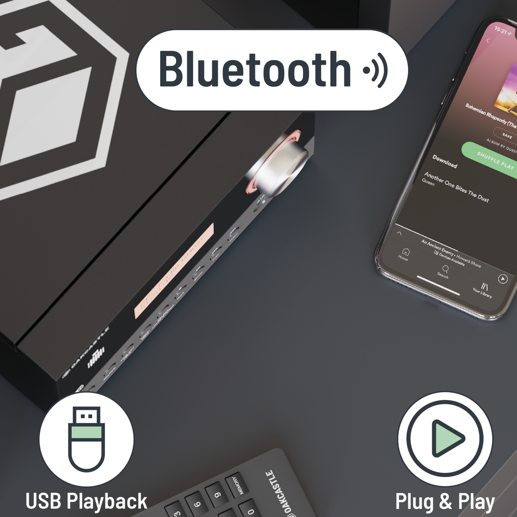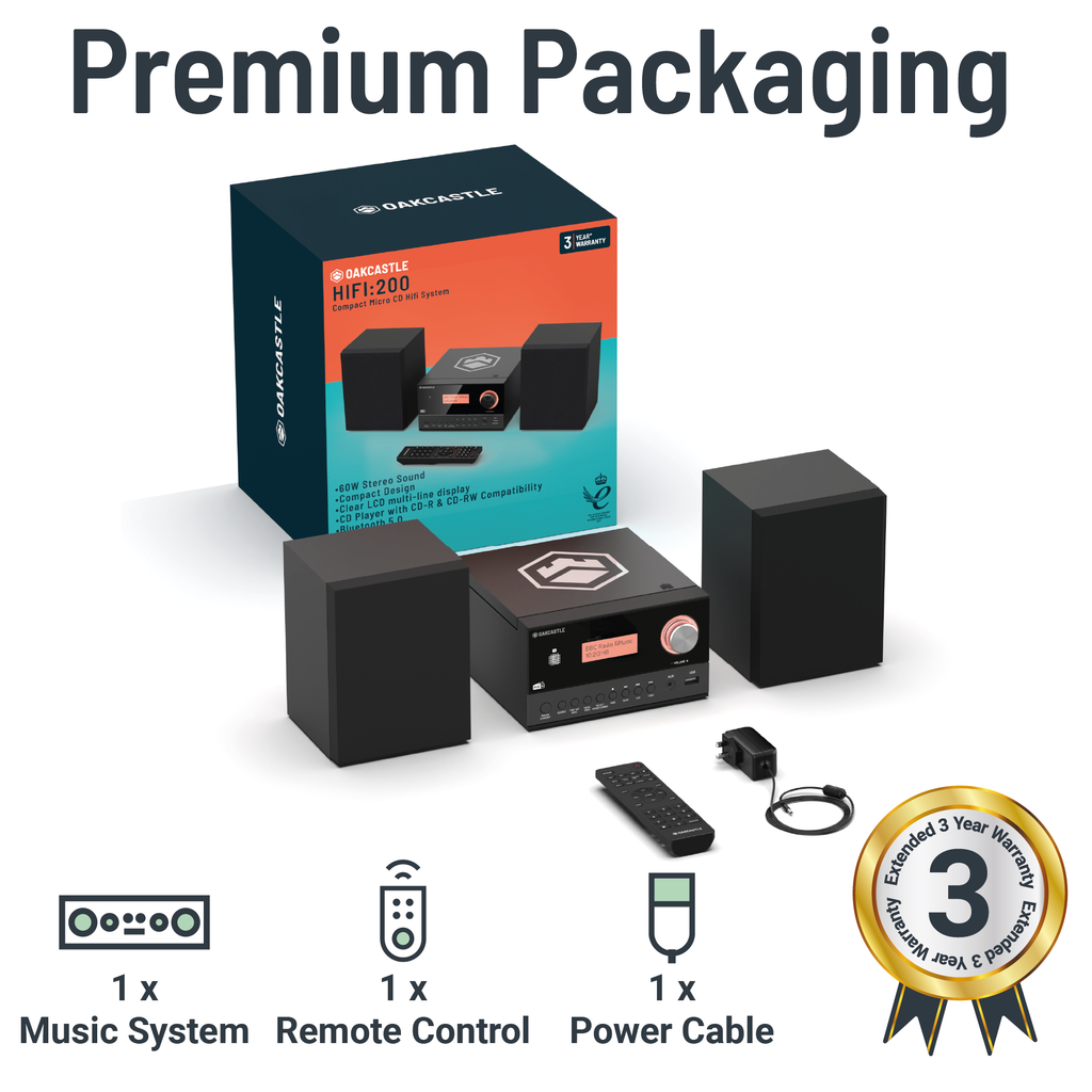 COMPLETE HOME MUSIC SYSTEM - The Oakcastle Hifi200 is designed in the UK by a group of audio experts. The micro hi-fi stereo system features a powerful pair of self-contained 2.0 stereo speakers capable of producing 60 watts. Our audio system features the latest in audio technology and is compatible with household items like your phone, tablet, MP3 or PC. Digital sound quality is designed, tested and perfected in Cambridge, UK.
